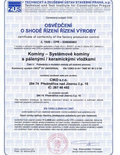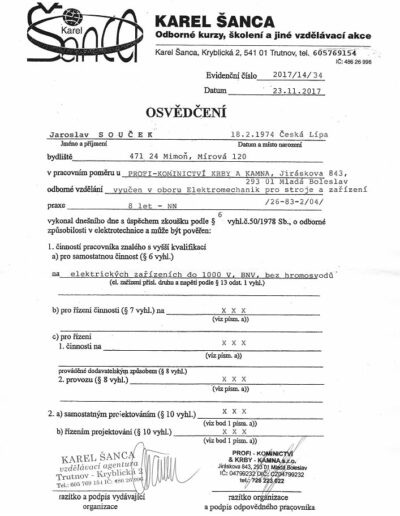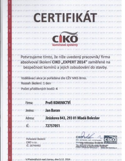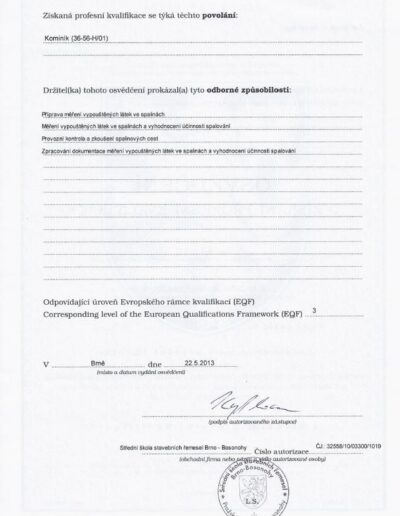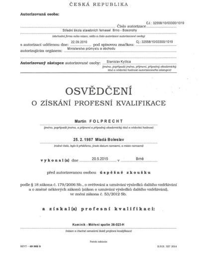 Prohlédněte si certifikáty našich pracovníků z Profi Kominictví Mladá Boleslav.