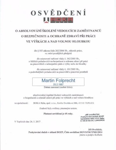 Pracovníci Profi Kominictví získali osvědčení o přezkoušení BOZP se zaměřením na práce ve výškách a nad volnou hloubkou a certifikát odborné způsobilosti pro výškové práce. Neustále své zaměstnance proškolujeme, abychom odváděli práci na nejvyšší úrovni.