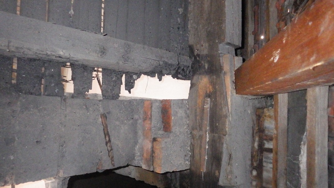 Před opravou – komín po vyhoření